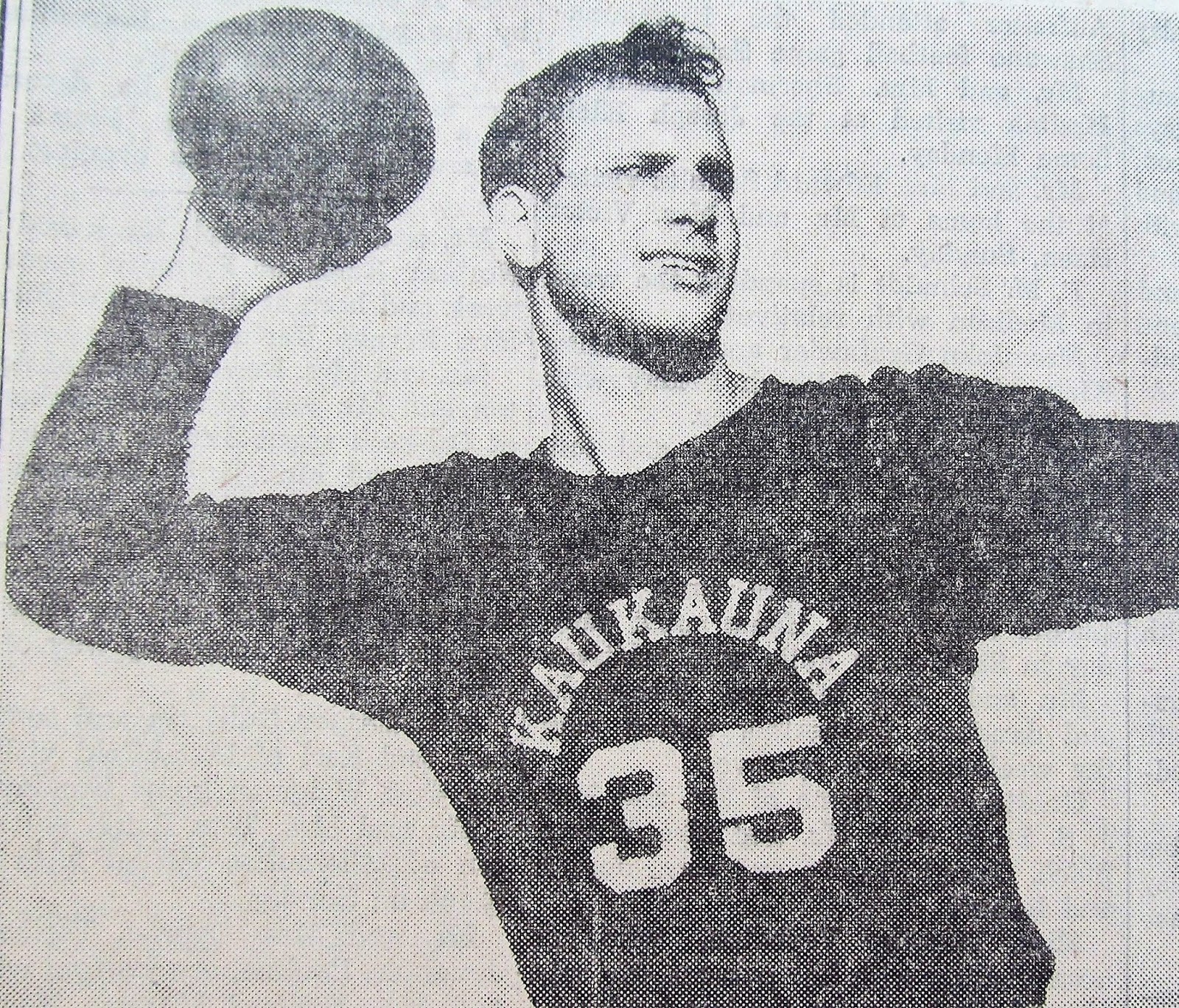 quarterback – Lee Schroeder; fullback – Gus Lindauer; left halfback Jewell;